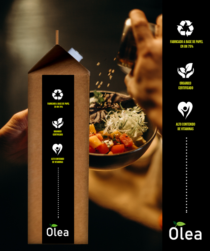 Olea se convertirá un nuevo ingrediente que agregue valor a la hora de elaborar cualquier receta dulce o salada que desee llevar a cabo. Nos destacamos en brindar un producto ecológico que sea utilizado en la cotidianeidad. Por ello hemos realizado presentaciones de Tetra Pack, el cual permitirá que conserven la perdurabilidad del color, sabor, olor y textura. Simultáneamente, su pico dosificador posibilita al consumidor la colocación del producto exacto sin derramar en exceso.