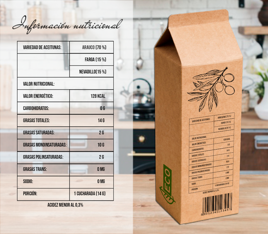 Máxima conservación del aceite gracias a su innovador packaging tetrapack que no permite la interferencia de luz, ni de aire y atribuye a la conservación que el aceite merece para mantener sus propiedades intactas.